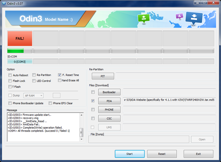 o Uncheck the "Auto Reboot" box in ODIN ***VERY IMPORTANT***