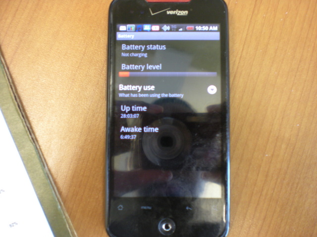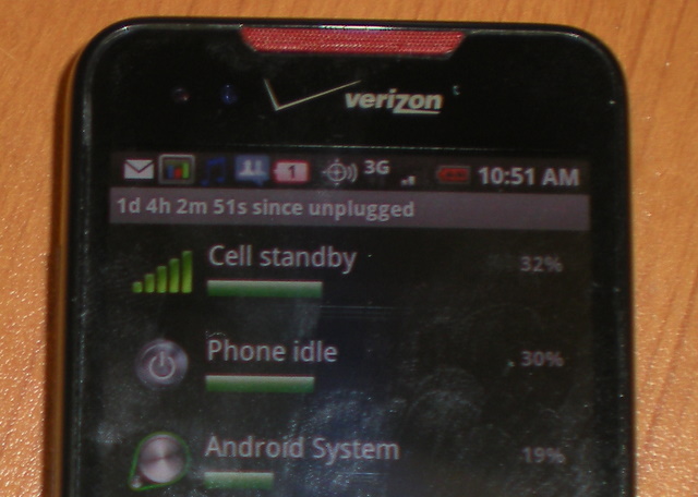 You'll see that the light is no longer green, in fact, you'll find that your phone charges for another 30-40 minutes. I'm not sure where this extra 'capacity' comes from, but filling it does wonders for your day to day. Also, grab a program like Linda and kill applications when you're done with them. I get a full day of use now, if not more.