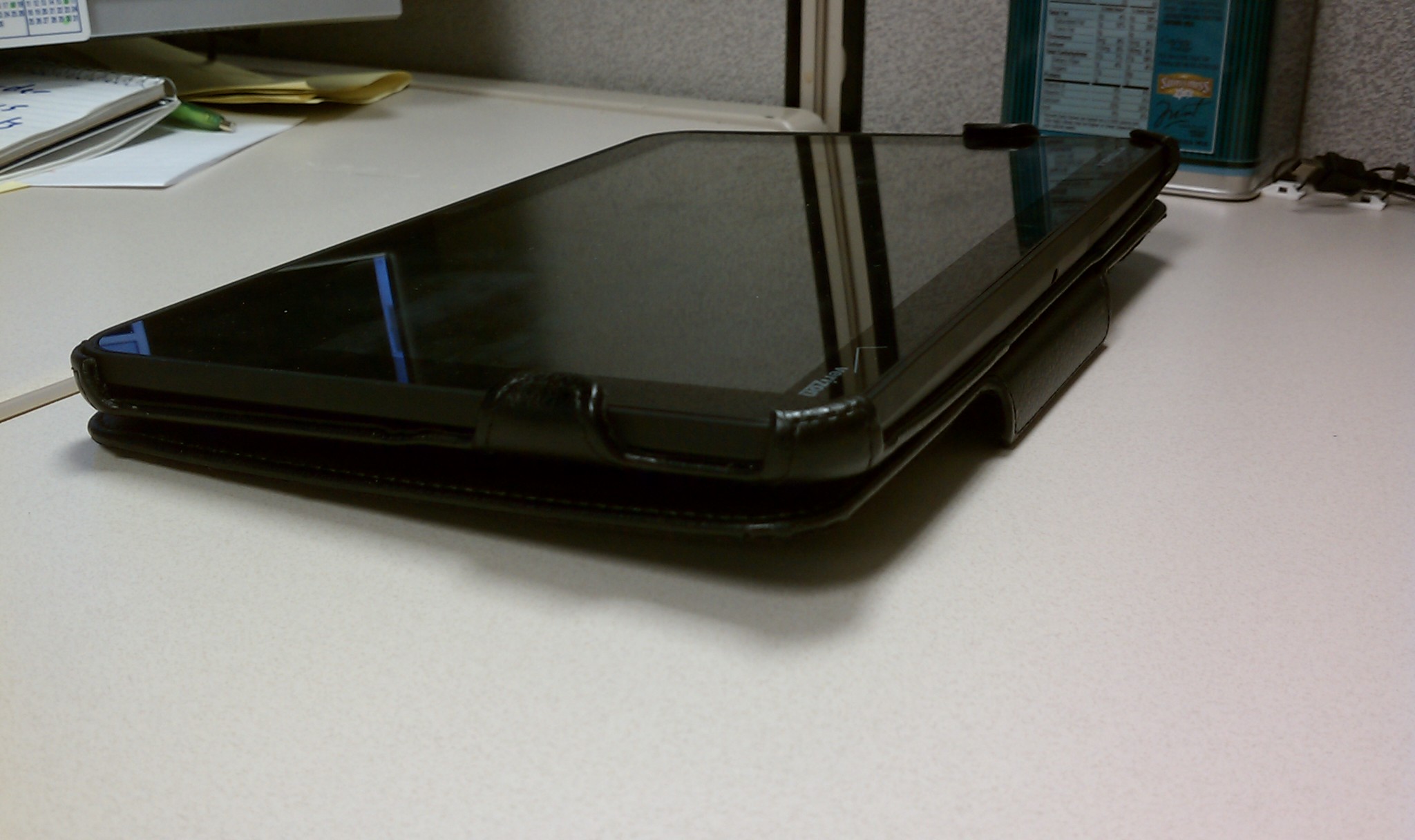 another benefit for those in my boat (2 and 3yr kids), i have a bunch of movies on it and with this case, I can open it up, slide the flap into my sunroof opening and now I have a nice 10" movie player for my kids in the back seat, works perfectly....