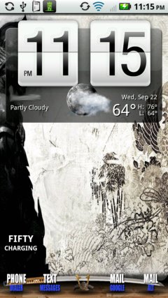 Locksreen - WidgetLocker w/SenseUI slider, SwitchPro controls, WeatherBug widget, and NAV icon below it. I use my phone a lot for NAV, so that was the only important icon for me on the Lockscreen, plus the Blue Arrow fits nicely with background - earth with blue rays going up to the sky.