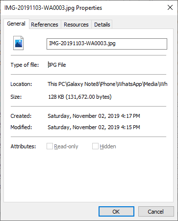 For a whatsapp photo received from another contact in my samsung galaxy note 8, why is the date created later than date modified? (please see the picture attached)
