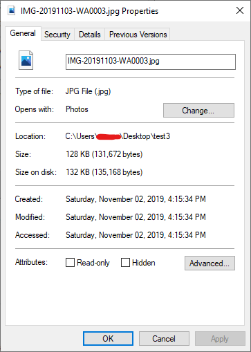 Can't even imagine what the problem might be but just out of curiosity, why are you so fixated on things like creation and modification dates on what appear to be random photo files? Is there a practical reason as to why? This thread is just one more of other similar queries you've posted..