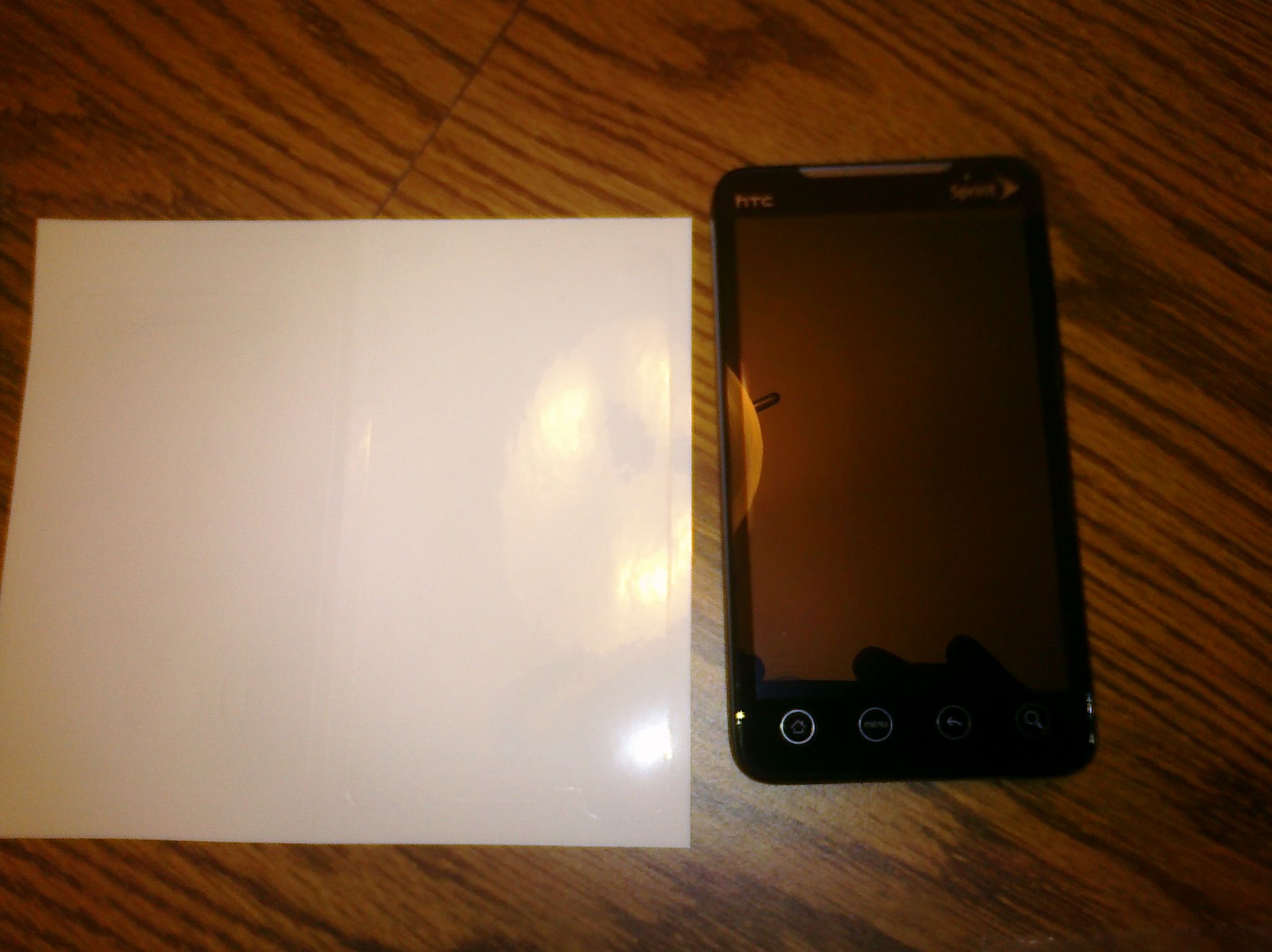 The front went on without any air bubbles or lint. Be sure to work somewhere where you have no lint or pollen in the air. First I scrubbed my finger tips with a no-lotion soap for like 3 minutes. Then I cleaned my Evo screen with eyeglass cleaner and a lint-free eyeglass cloth. Then I cleaned my finger tips again. Then lightly sprayed the back of the screen cover, attached it at the top and started working down with the squeegee to move all air bubbles out long before it gets dry.