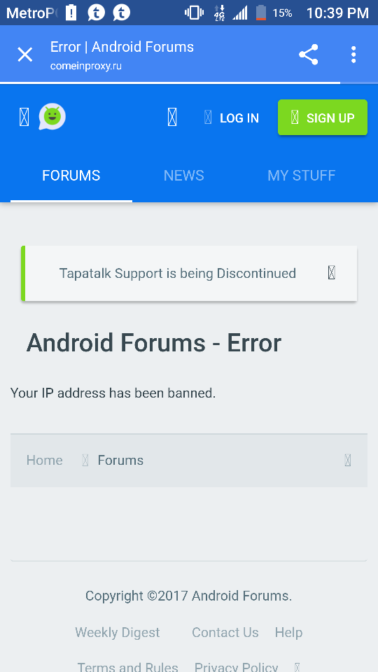 That proxy one is just the same page shown through the proxy, and the message is because the forum is blocking the Russian proxy IP, not our IPs.
