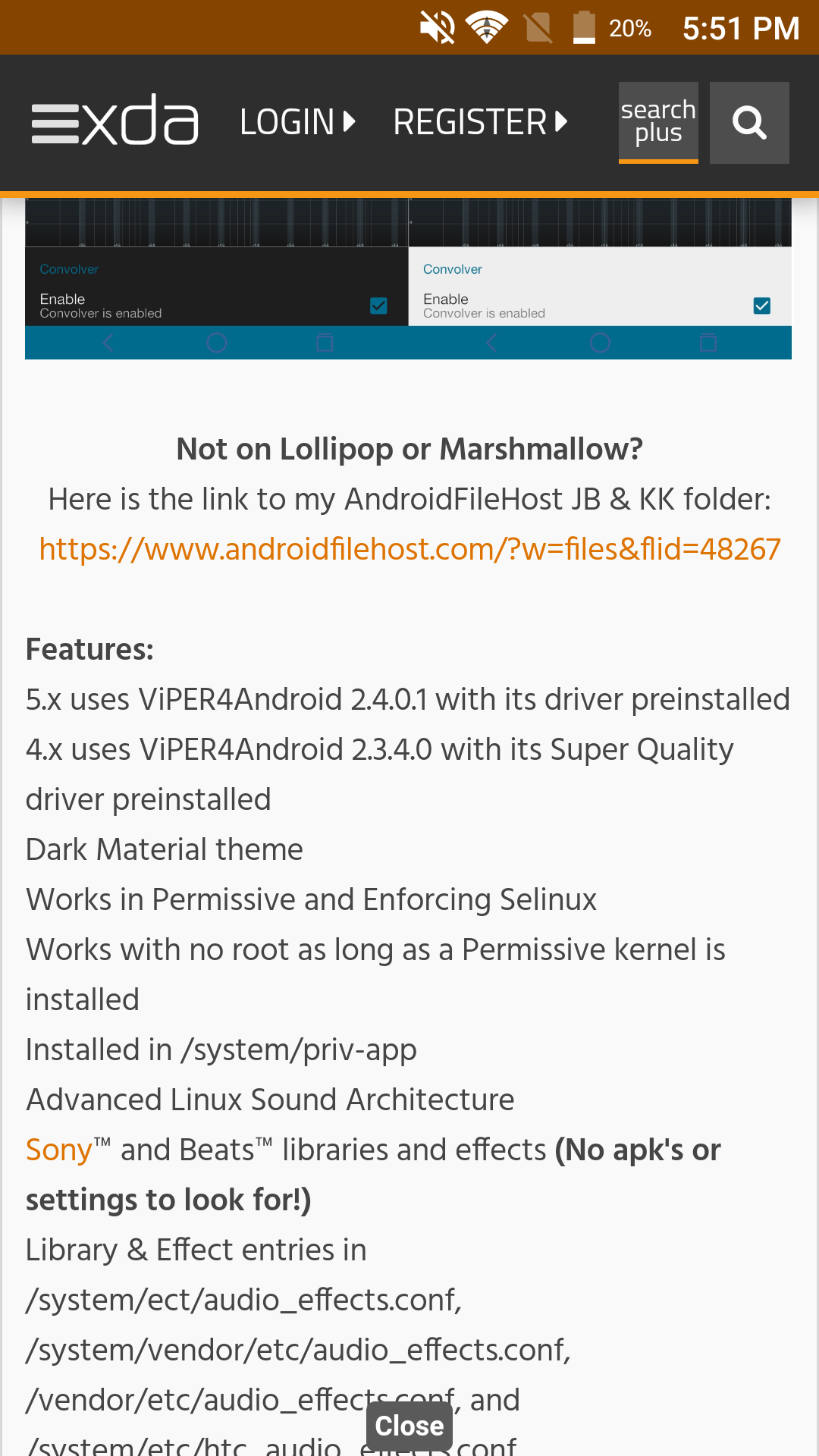 I think there's one that works on enforced.. I'll take a look and narrow it down..We don't have permissive selinux. Did I miss it? Was there a no root viper4android mod/port? I'm sorry I just NEED Viper! Lol