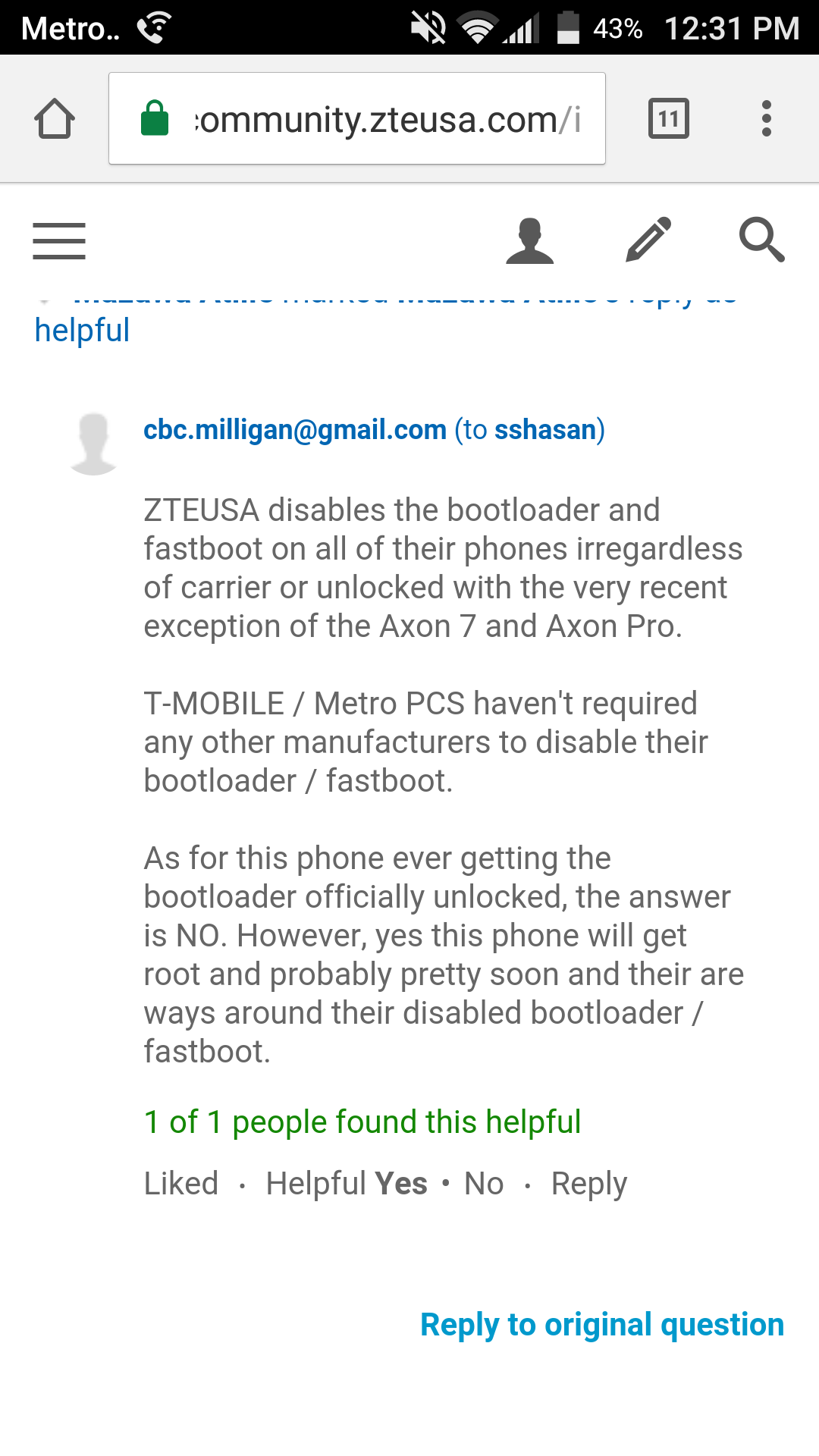 Erik S.: Or if you guys want to swap my ZMAX Pro for an Axon 7. I am specifically working on an application that is having bugs with ZTE handsets in particular and need need access to the bootloader to pull the logs.